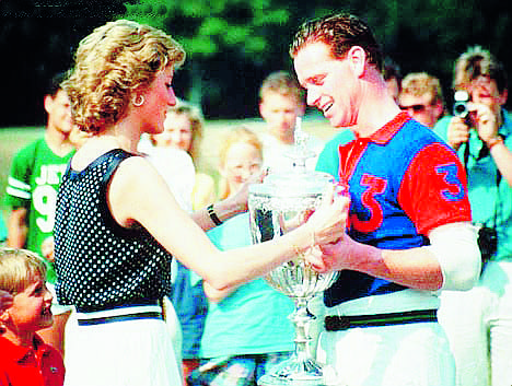 Part-financed through his own savings – and very much his idea – Polo House, which has been open for two years, is a classic colonial-style redoubt. Airy and sumptuous, the restaurant is filled with imported dark wood from the Far East, with polo trophies and pony pictures dotted around – although, unsurprisingly, no copies of the famous photograph (below left) showing a blushing, giggly Diana handing Hewitt his winning polo trophy.