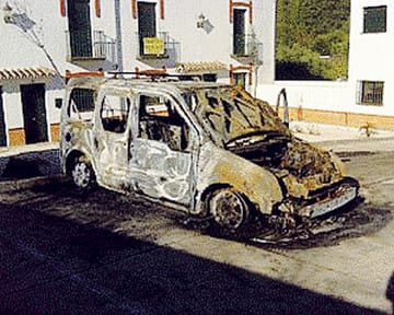 A BRITISH bar owner was horrified to wake up to find his car on fire in the sleepy mountain village of Jimera de Libar.