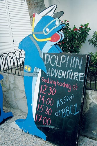 Wearing the bright blue colours of Dolphin Safari, she and her husband – who rides a bike and keeps in touch with her via walkie talkie – have the unenviable job of enlisting tourists on the daily trips that cost around £25 per adult.