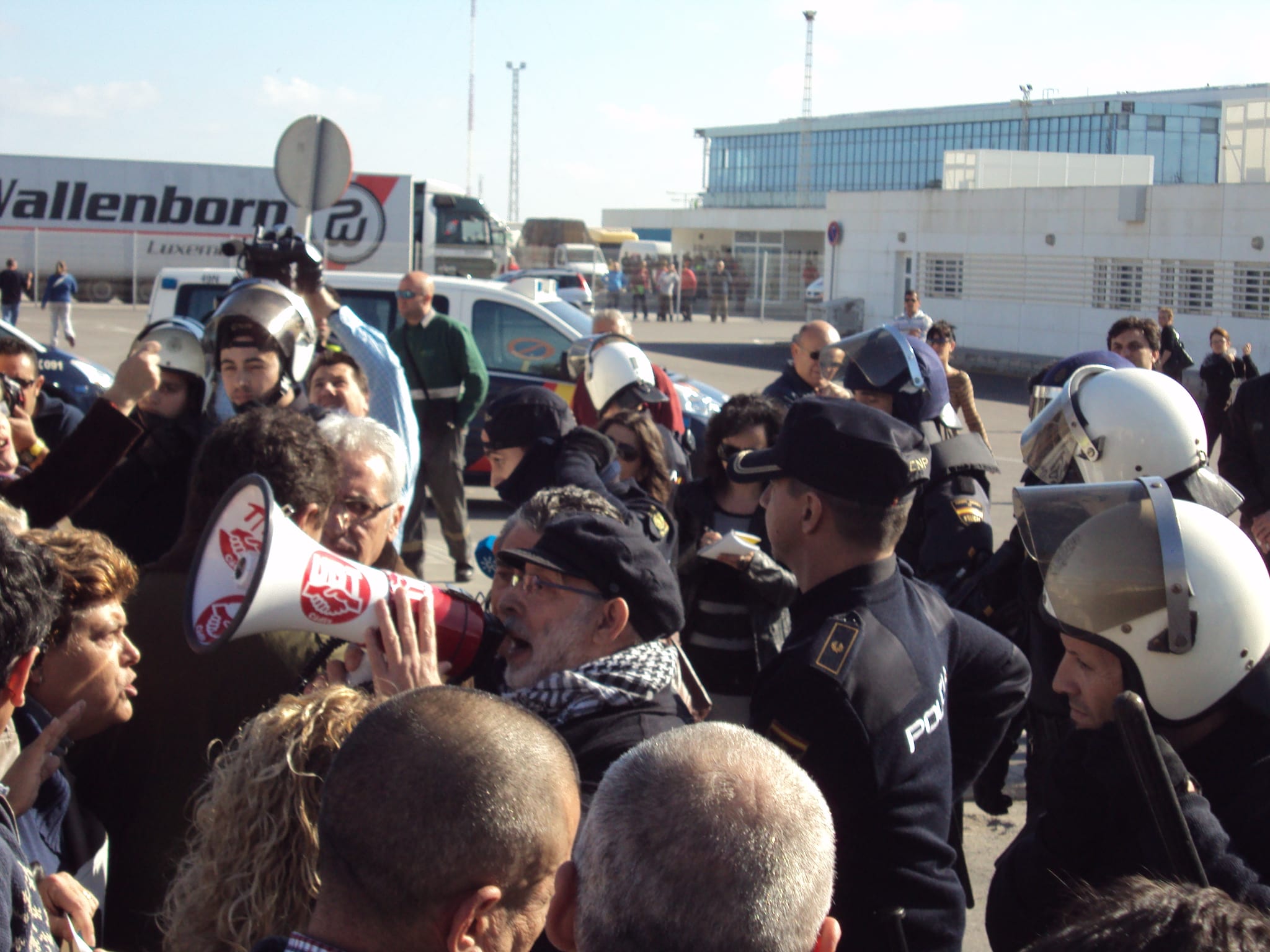 Police fought back attempts to charge the line with batons resulting in a standoff between both sides that has left the border crossing gridlocked.