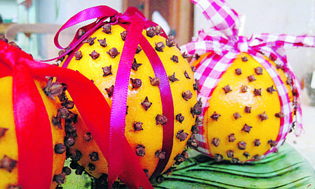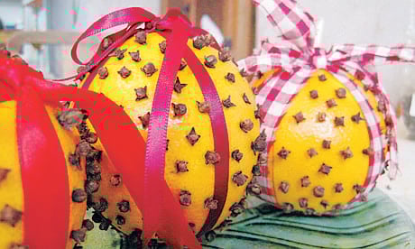 Another environmentally-friendly idea is to make sweet-smelling pomanders from oranges and cloves (see below).