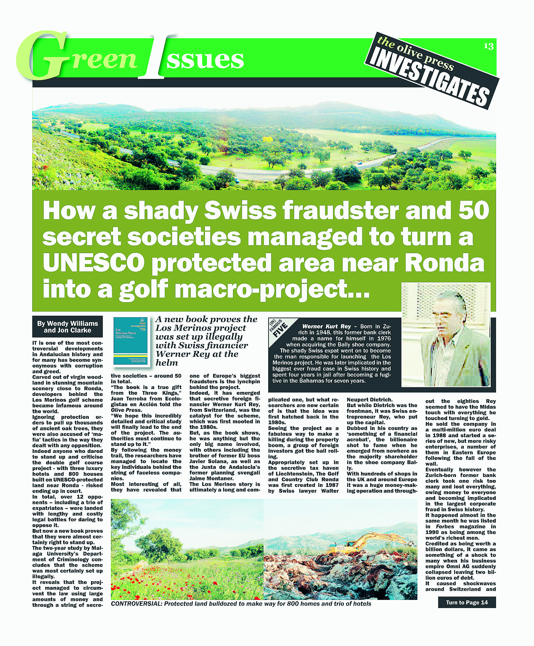 Meanwhile a new book proved the infamous Los Merinos golf project in Ronda was set up illegally thanks to 50 secret societies and a bunch of shady businessman.