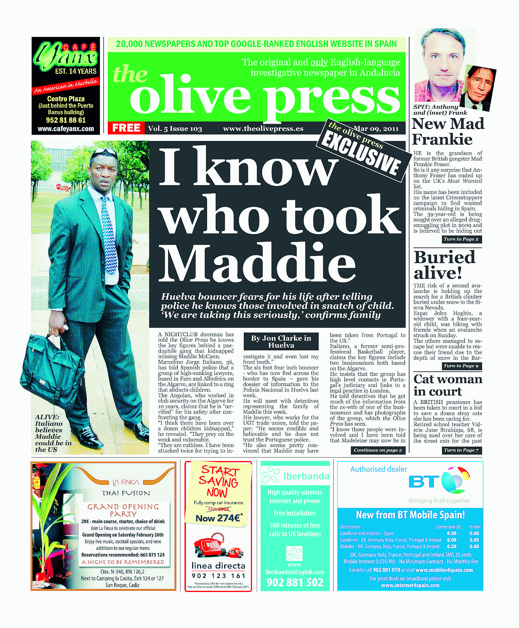 In March we broke the exclusive story of a Huelva bouncer who claimed he knew who took missing youngster Maddie McCann. Marcelino Jorge Italiano insisted a Portuguese paedophile gang was behind the kidnapping and he fled to Spain in fear of his life. Sadly his story does not seen to have brought the police any closer to finding Maddie, however it has been revealed this month that British detectives are due to fly into Barcelona again (the second time in two months) to follow up eight other good leads.