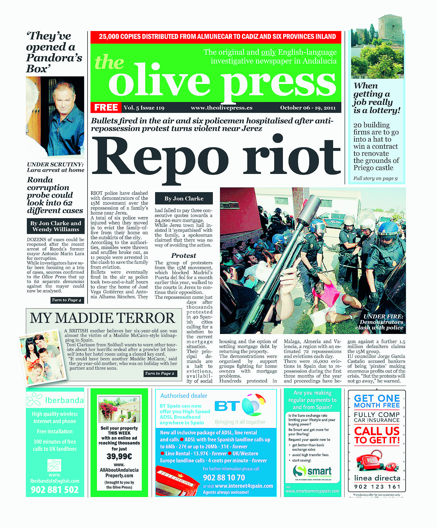 In October we led with the story Repo Riot revealing how riot police, sent in to repossess a family’s home in Jerez, clashed with demonstrators of the 15M movement. The story was a stark reminder of the bleak economy that has left millions of people unable to pay their mortgages, and the growing number of ‘indignant’ Spaniards.