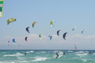 The best wind for kitesurfing is the Poniente, which comes in from Portugal.