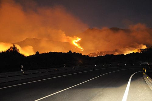 THOUSANDS of people have been evacuated from their homes as a huge forest fire rages on the Costa del Sol.