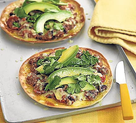 Lift onto plates and top with half of the avocado and coriander to serve. Repeat with the remaining tortillas.