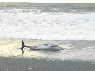 Together with another local walker, also an expat, she tried to push the mammal out into the sea but strong waves kept knocking the dolphin back to shore.