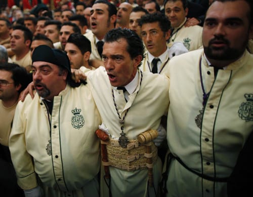 The procession, which started at San Juan de Malaga church, gives Banderas a chance to get back in touch with his roots after a busy year.