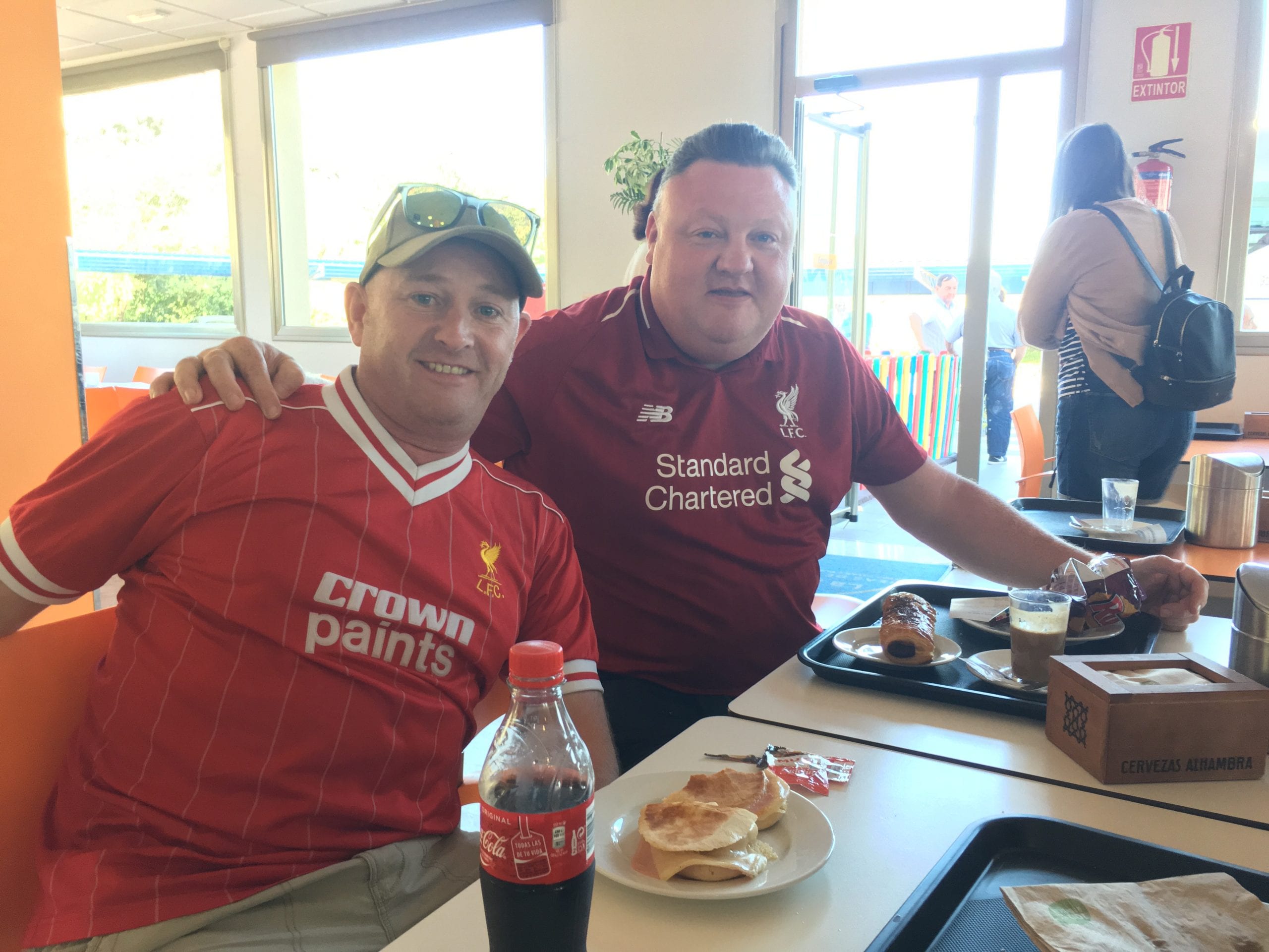 Cafe con leche, tostadas, cigarettes and beer are the order of the day for scores of Champions League final-goers pit stopping in Granada.