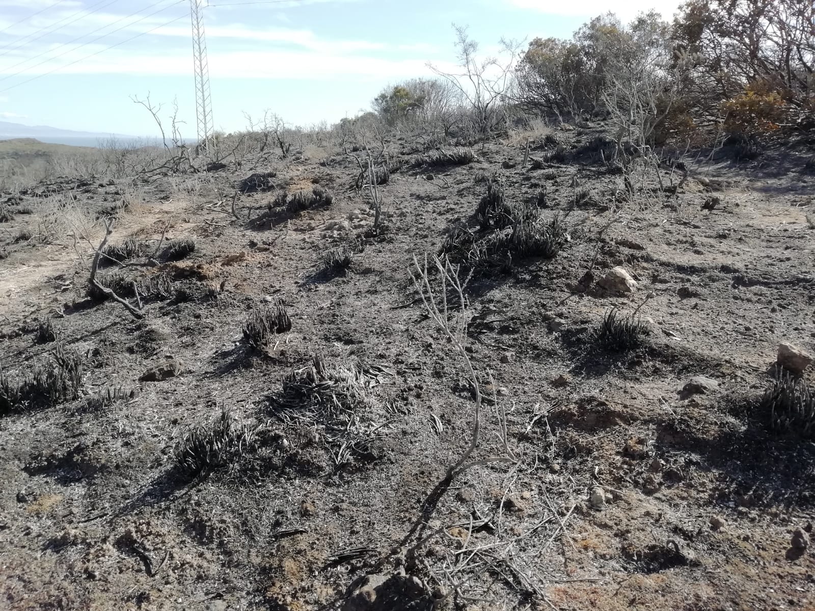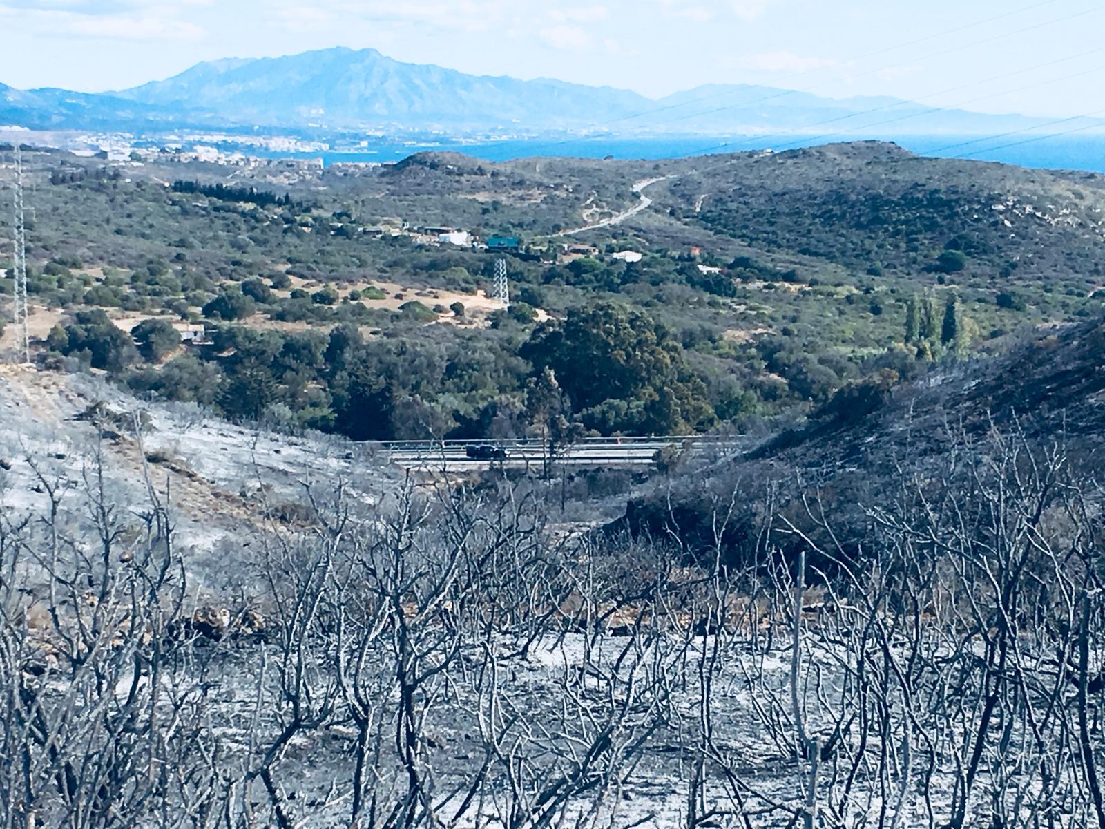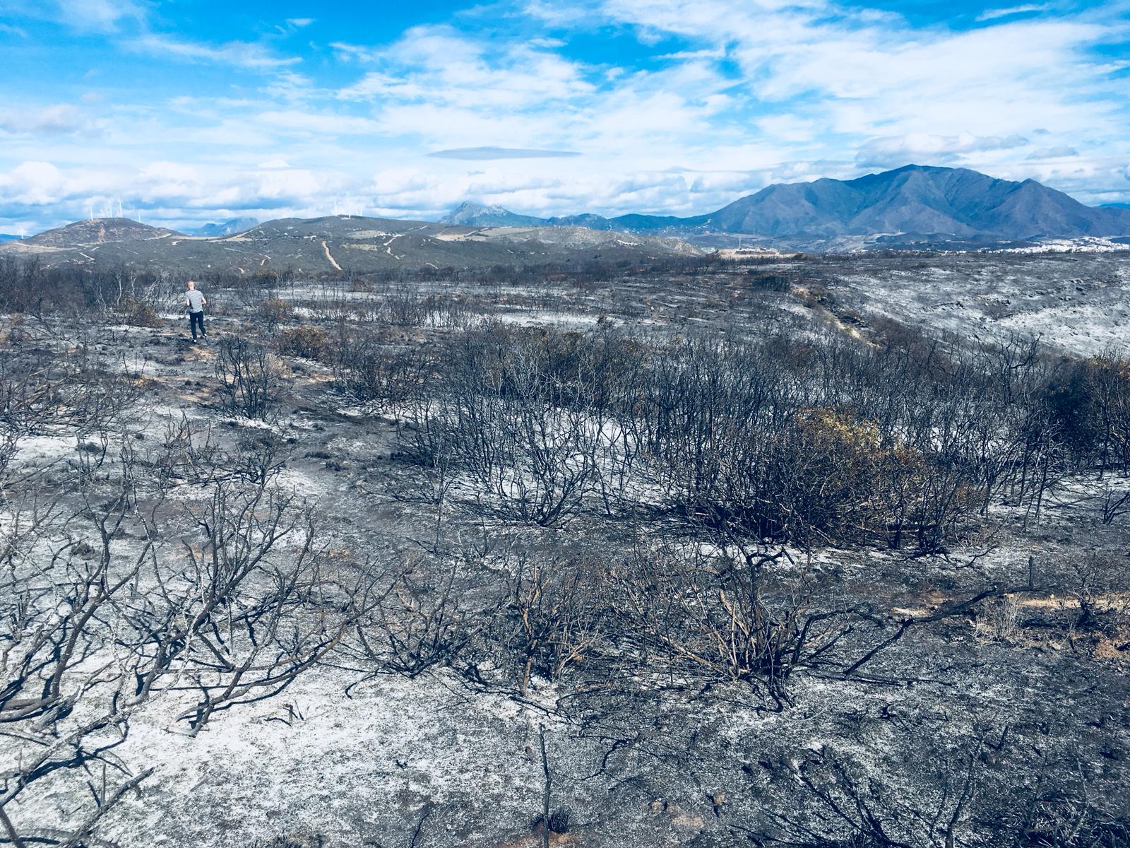 All taken above Manilva’s Aldea Hills urbanization, the eerie shots show charred bushes, scorched earth and miles of burnt scrubland.