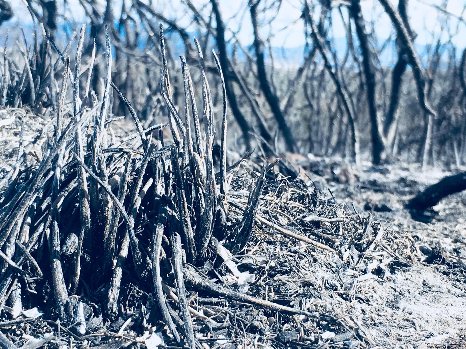When Olive Press reporters visited the affected zone at 1pm today, small areas were still on fire and a helicopter was in use to tackle the flames.