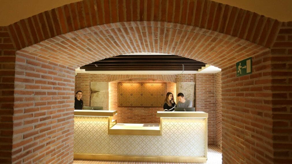 Rustic wrought iron details have been preserved in the hotel’s windows and balconies, as has the building’s sweeping staircase.