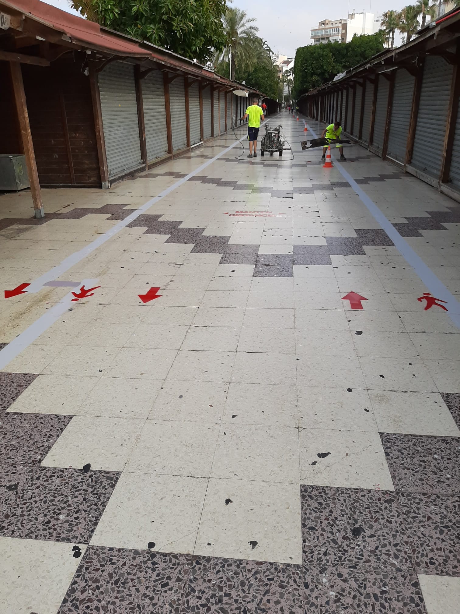 The sea-front Paseo de la Libertad ‘los Hippies’ site was prepared yesterday to comply with distancing guidelines in Spain’s ‘new normal’.