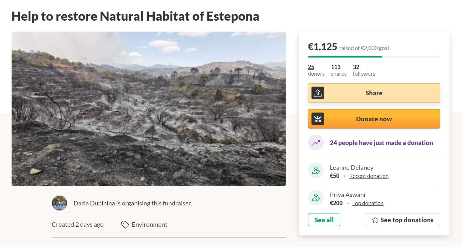 *Additionally, the Malaga Veterinary Association has set up a 24-hour hotline (tlf: 630 80 99 23) to report any sightings of animals injured in the Sierra Bermeja wildfire.