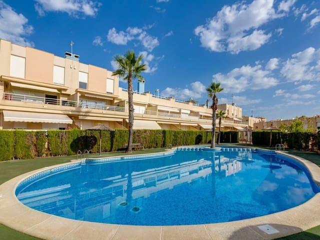 Aguamarina Bungalow on the ground floor facing south very close to the beach, the house has about 65 m2 with 2 bedrooms, 2 bathrooms, American kitchen, large living room and a large terrace with access to the common areas, the house is sold furnished and with air conditioned, it is sold together with its garage space and a storage room, the urbanization is completely fenced and has a large green area and a beautiful community pool… See full property details