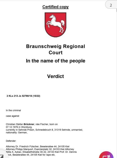 However, Brueckner’s lawyer Philip Marquort, said: “This confirms the suspicions we have repeatedly expressed, namely that there is no reliable evidence against our client.”
