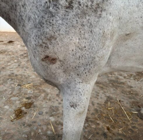 One of the nags that arrived at Frossle’s safe haven for horses is riddled with injuries and is afflicted by serious eczema with very long hoofs whilst the other is ‘nervous’ and reacts fearfully to movement.