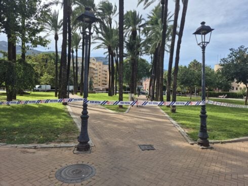 A palm tree fell in Jaume I park which was sealed off by the Denia Policia Local.