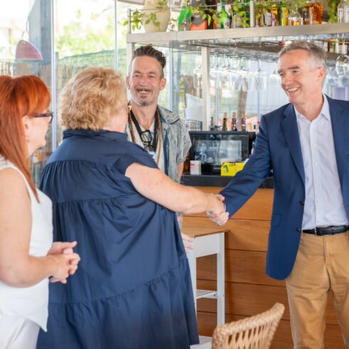 The UK’s ambassador Alex Ellis even shook her hand as she was described as leading a ‘key organisation supporting British nationals’ in Estepona last month.