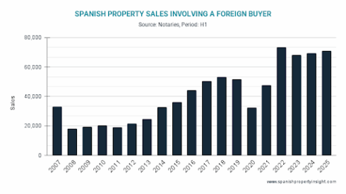 In short, Spain’s foreign-buyer boom rolled on through the first half of 2025 — but the latest data hint that the tide may now be turning.