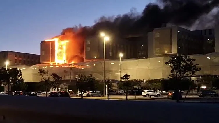 The fire began on the terrace of Block 5 of the hospital and spread up to the third and fifth floors.