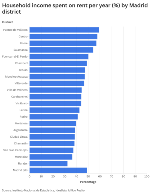 For residents of the Barajas district, by contrast, the figure sits at a more comfortable 32%.