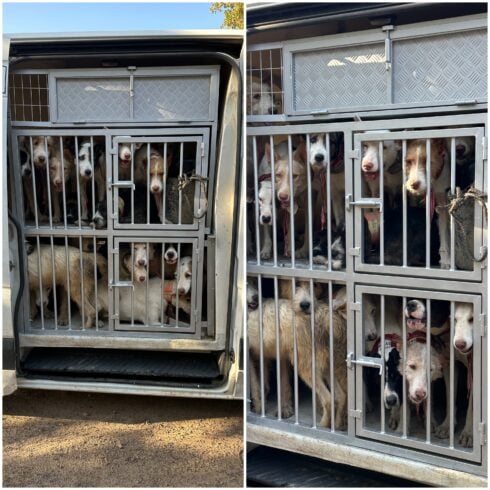 WATCH the moment that packs of Spanish hunting dogs crammed into cages and tight transport trailers cry and bark, pleading for help.
