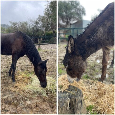 “We have rescued two old mares, one donkey, a mule who is emancipated and a younger donkey and mare who we believe were not with the dealer for as long as they are not as hurt,” Joss told the Olive Press.