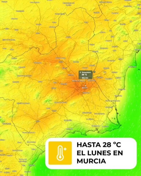 The city of Murcia will be the hottest spot in the country, bracing for an extraordinary high of 27C.