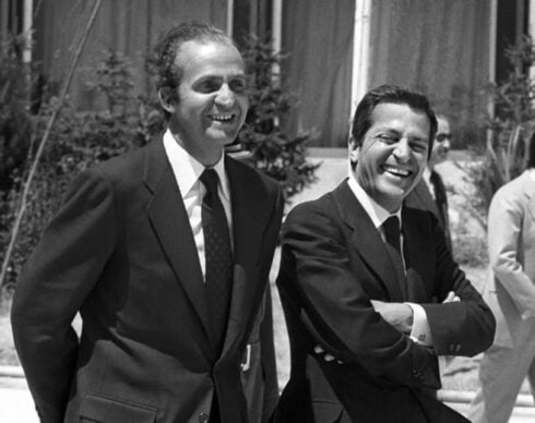 In one he is smirking with a cigarette in his mouth from a bench in Spain’s parliament. In another he and a young looking King Juan Carlos are standing together laughing over a shared joke. In a third, he is delivering a speech, the consummate statesman.