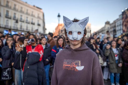 The experiences of young people caught up in the storm reflect this shift. Gabriela, a 15-year-old behind a fox mask in Madrid, said she came to Puerta del Sol hoping to meet others like her.