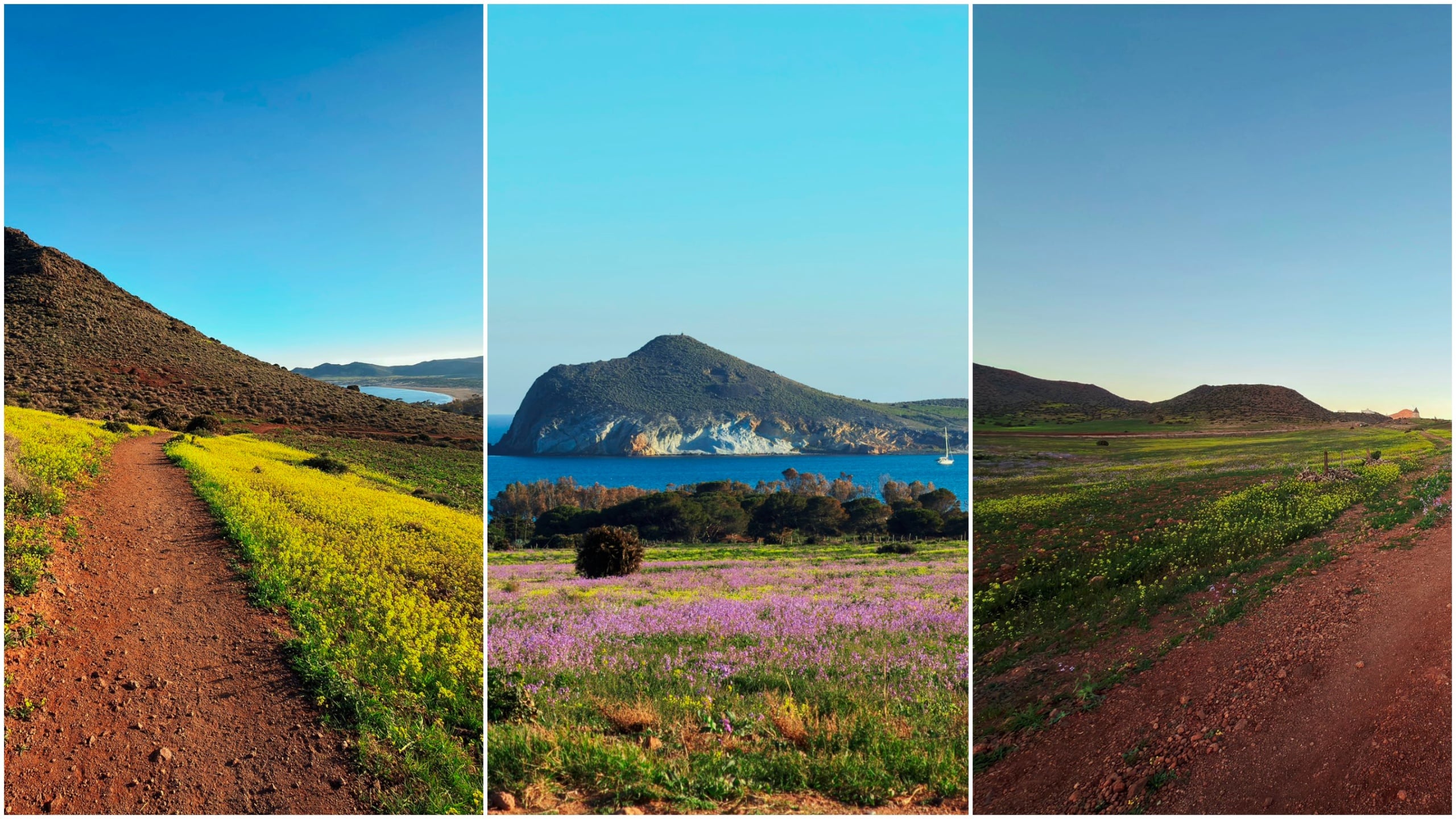 Following weeks of uncommonly heavy rainfall during a seemingly endless succession of Atlantic storms, the usually barren terrain around the iconic Los Genoveses beach erupted into a spectacular carpet of wildflowers.