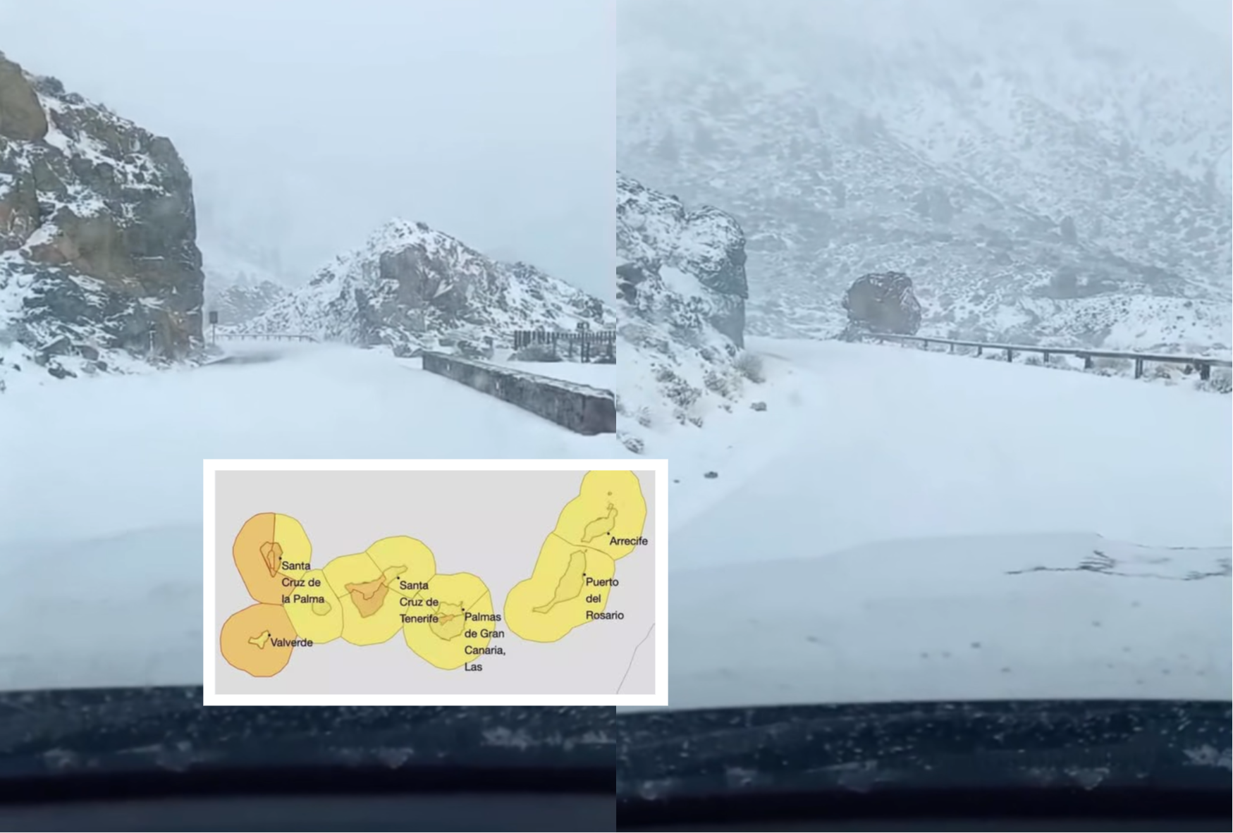STUNNING scenes from Tenerife show Spain’s highest peak transformed into a winter landscape as extreme weather forces road closures and disrupts travel plans.