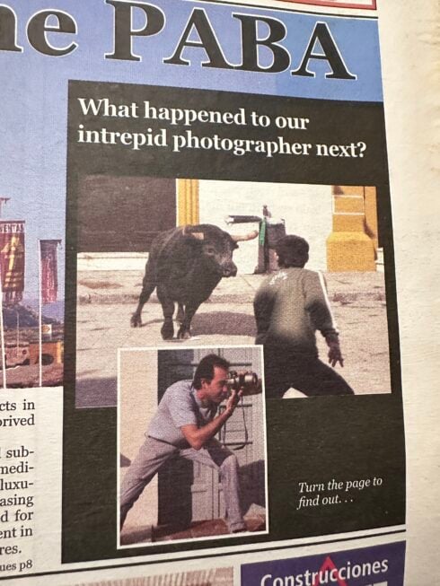 “I now realise what these guys risk in the ring,” he told us. “Running the bulls like this is an opportunity for the bull to get his own back. He certainly did with me.”