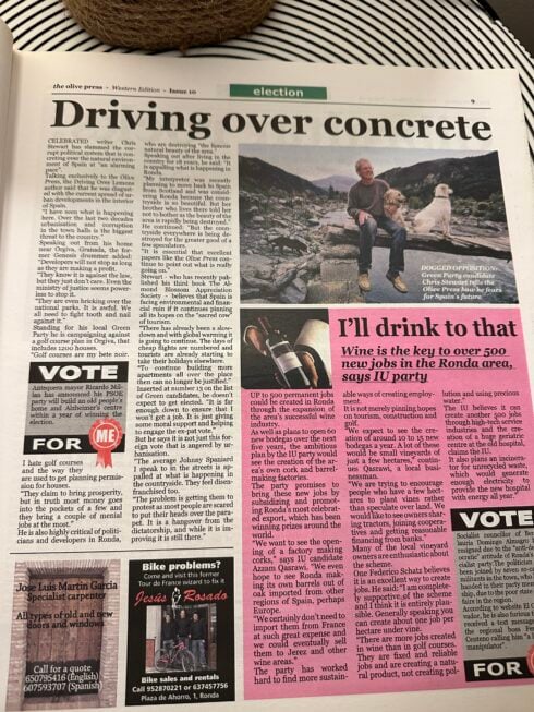 The author of half a dozen books on Spain – including seminal tome Driving Over Lemons – told us he was standing for the Green Party in that year’s Spring elections.