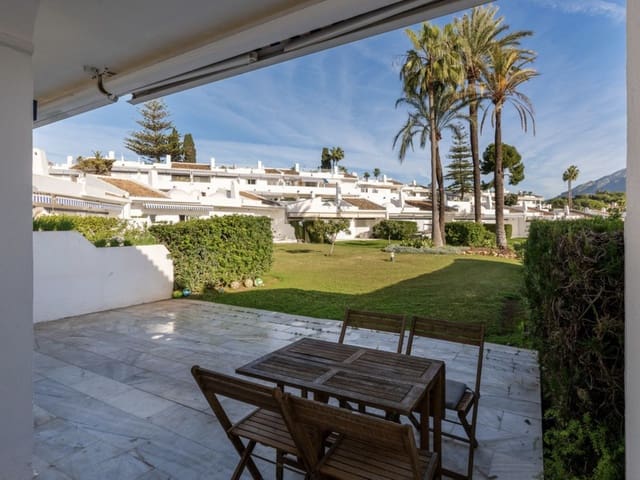 Renovation opportunity in superb golf valley location | Aloha, Nueva Andalucía Set within an established fully gated and private community, this semi detached single level bungalow offers direct access to a fabulous terrace that flows directly into the stunning community gardens. Facing east, the property enjoys morning sun and a naturally bright interior throughout. Internally, the home requires renovation (although it is in perfect living condition now), presenting a clear opportunity to modernise and add value in one of Marbella's most sought after residential areas – it is also… See full property details