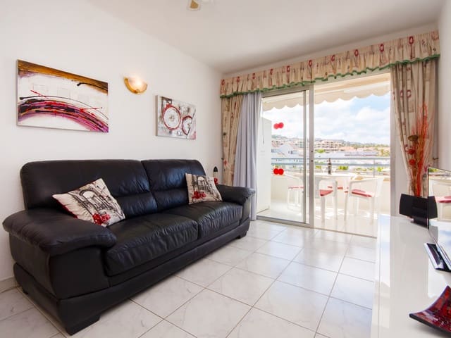 Located in the heart of the tourist area, this third floor, one bedroom apartment offers location, views and endless shopping & entertainment on your doorstep. A superb double balcony gives you plenty of space for daytime sunbathing, or evening relaxation, while you enjoy the view of the tastefully designed pool area and out to the Atlantic. The spacious living area, tastefully furnished, also hosts an open plan kitchen and dining area. The roomy bedroom has built in wardrobes, and is air conditioned for your comfort in the summer heat. Patio doors from both the living room and bedroom… See full property details