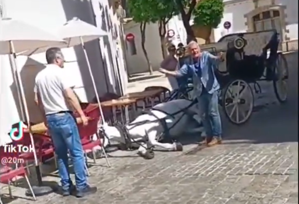 A HORSE pulling a carriage collapsed three times in Jerez de la Frontera, after working for hours.
