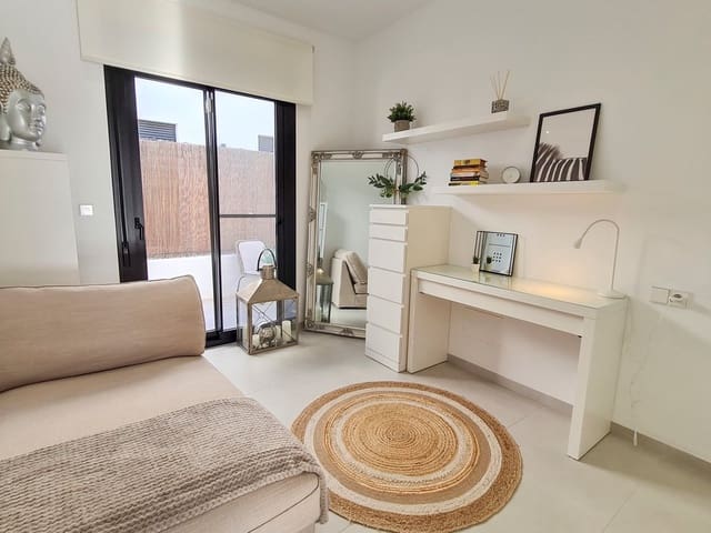 Overview This modern, detached single-storey villa offers move-in ready, fully furnished accommodation with a large heated private pool on a generous plot of approximately 294 m² (12.00 x 24.40 m) in Sucina (Murcia). The property includes a 54.84 m² roof terrace, a practical storage room, roller shutters all around (electric on the sliding doors) and an electric awning, combining comfort, privacy and low-maintenance Mediterranean living. Interior & Features The bright, open-plan living room flows directly into the modern kitchen and dining area, with large sliding doors that connect… See full property details