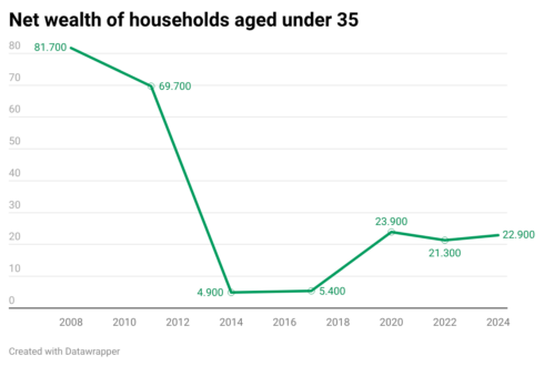 Figures from the Bank of Spain’s 2024 Household Financial Survey reveal an eye-watering decline in wealth, with the average net worth of under-35s dropping from €81,700 at the start of the crisis to just €22,900 in 2024.